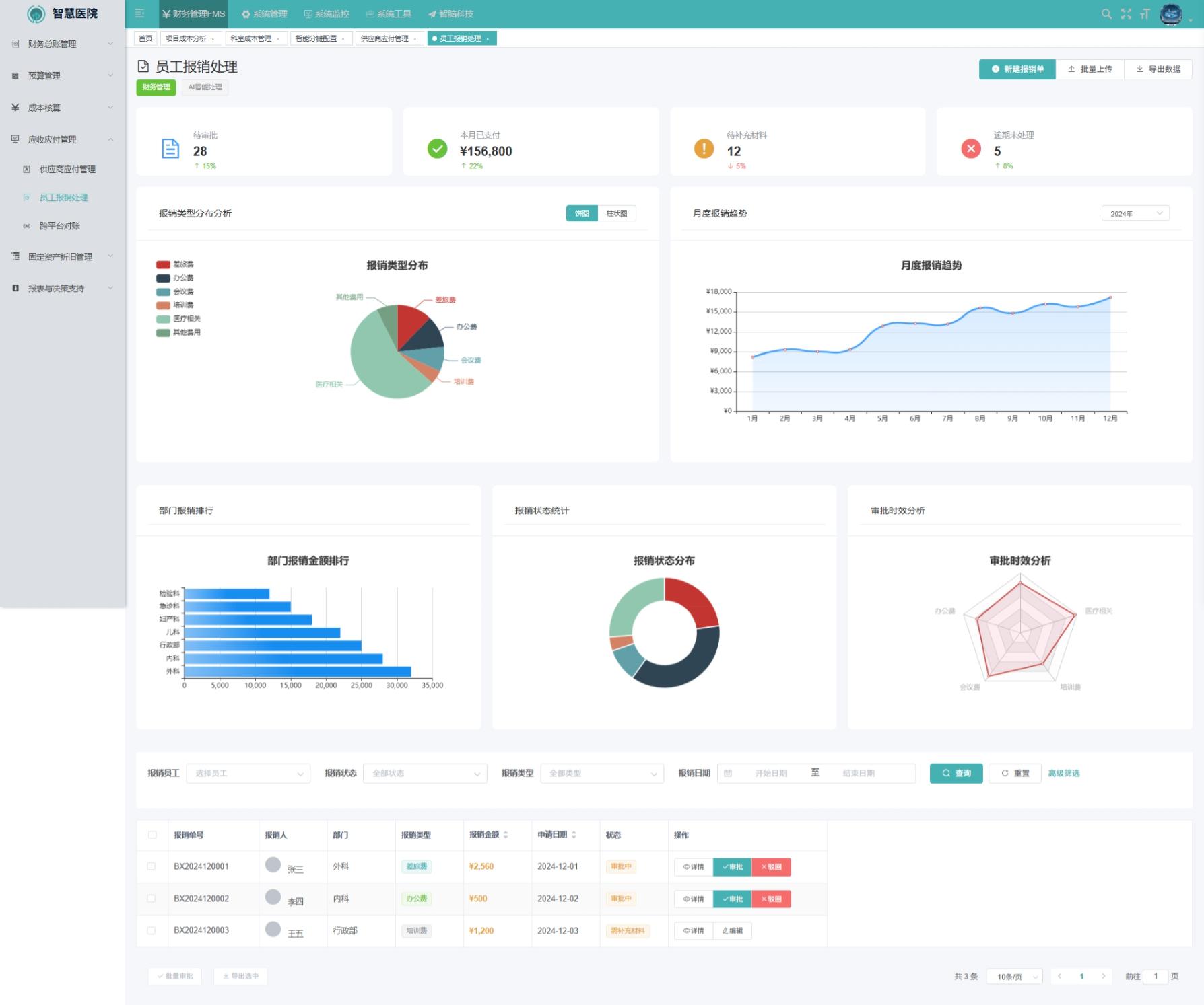 员工报销处理功能是医院内部员工费用报销流程的数字化平台,旨在提高报销效率、保障报销合规性,并减少人工干预带来的误差。