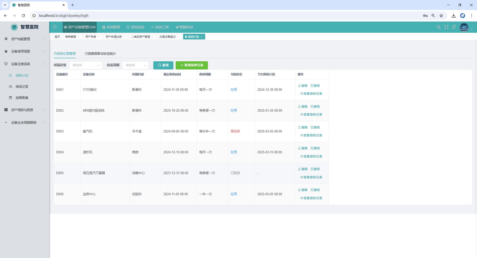 用于登记可共享使用的医疗设备,如MRI、CT等。支持设置共享规则,明确可借用科室、使用条件和限制,确保资源合理分配。