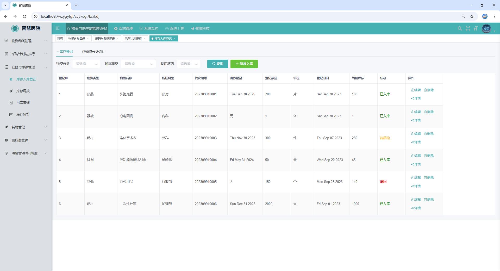 物资入库时,系统支持通过条码扫描或RFID技术自动识别物资信息,并记录其有效期、厂家、批号、入库时间等关键数据。所有入库操作均留有操作日志,便于追溯和审计。系统自动更新库存数据,确保库存信息的实时性和准确性。