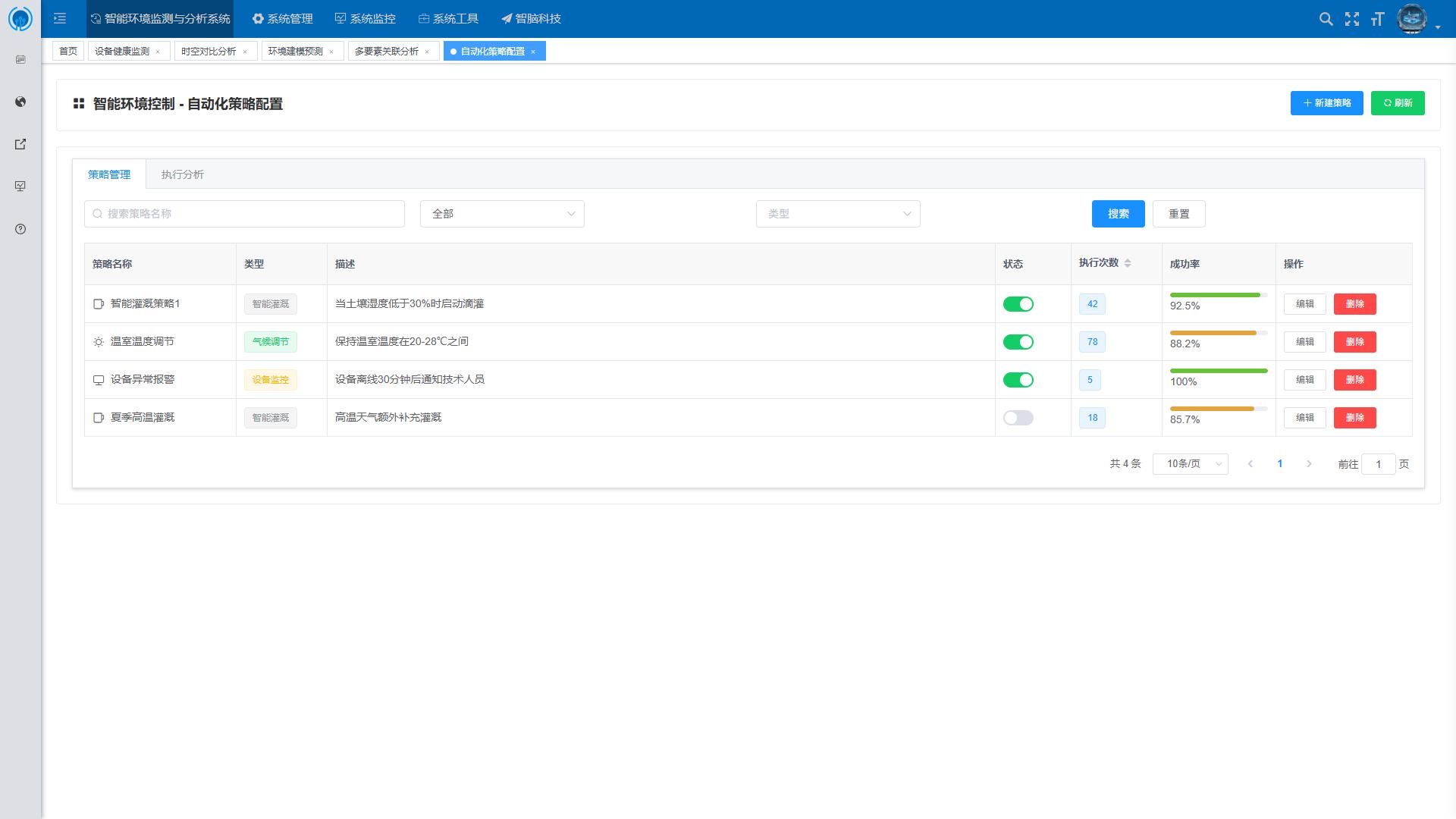 用户可自定义自动化控制策略,如“土壤湿度低于15%时自动开启滴灌”,系统将根据策略自动调用相关设备。
