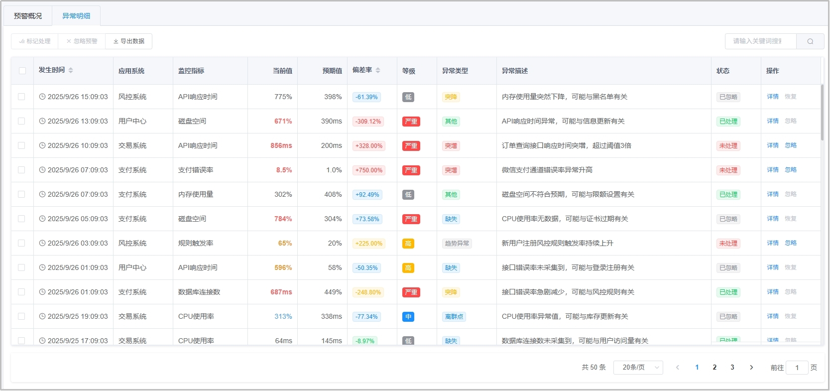 用户可设置多种预警规则,系统将基于规则自动发出告警,并提供关联的应急解决方案。
